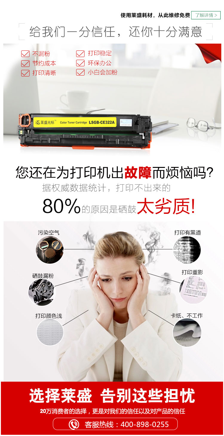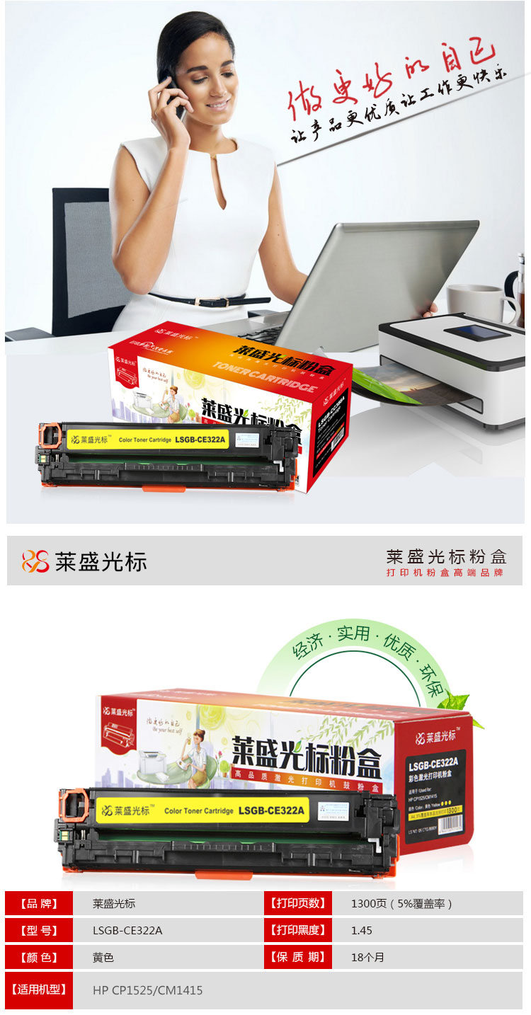 萊盛光標(biāo) LSGB-CE322A 黃色粉盒 適用HP CP1525/CM1415
