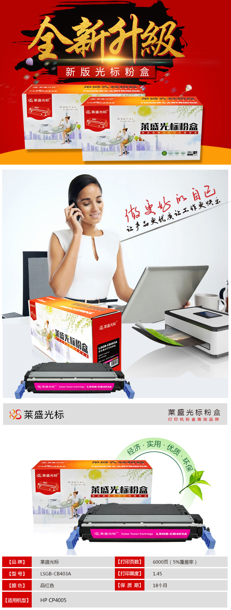 萊盛光標(biāo) LSGB-CB403A 紅色粉盒 適用于HP CP4005
