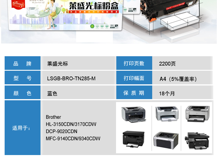 萊盛光標 LSGB-BRO-TN285-M 紅色粉盒 適用于Brother HL-3150CDN/3170CDW