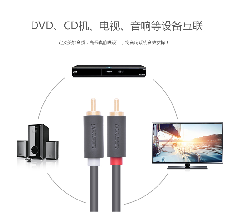 綠聯(lián) AV104 雙蓮花頭音頻線2RCA公對公 二對二紅白AV音頻信號線 DVD電腦電視接音響箱功放線 1米 黑色 單個裝