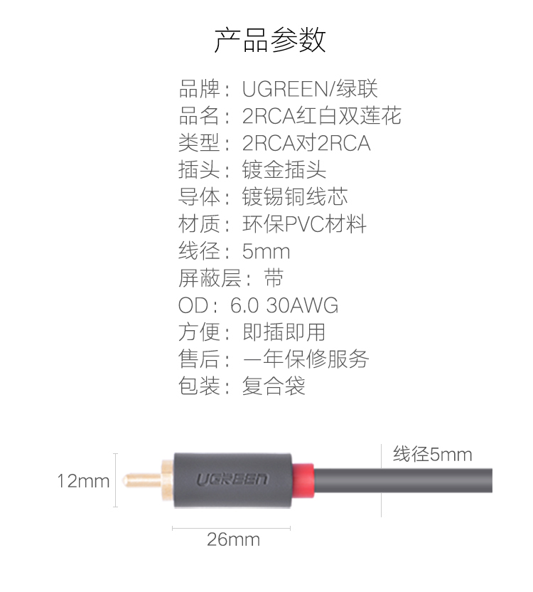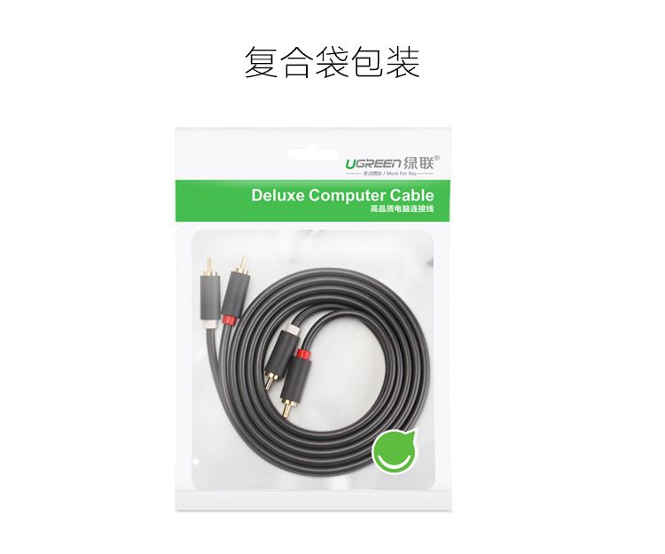 綠聯(lián) AV104 雙蓮花頭音頻線2RCA公對公 二對二紅白AV音頻信號線 DVD電腦電視接音響箱功放線 1.5米 黑色 單個裝