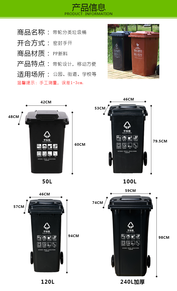 ABEPC 120L帶輪 黑色 干垃圾桶 物業(yè)環(huán)衛(wèi)垃圾分類商用帶蓋分類垃圾桶果皮箱 單個(gè)裝