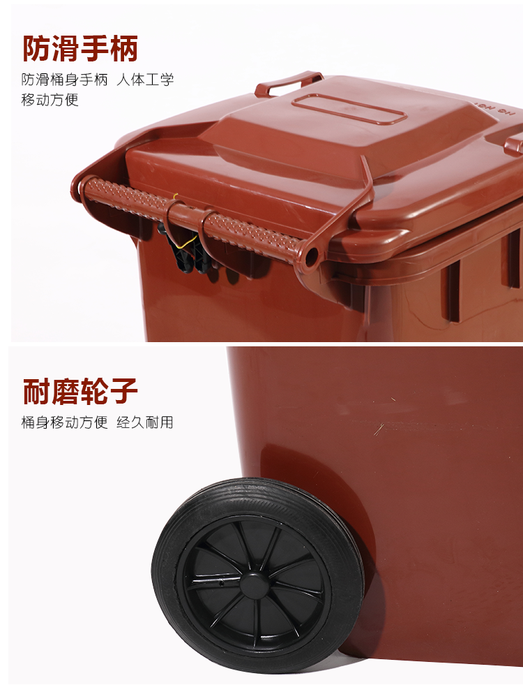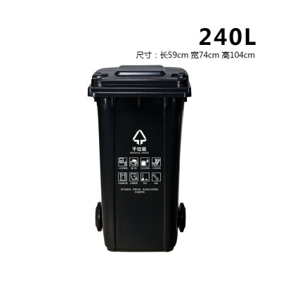 ABEPC 240L可掛車帶輪 黑色 干垃圾桶 物業(yè)環(huán)衛(wèi)垃圾分類商用帶蓋分類垃圾桶果皮箱 單個(gè)裝