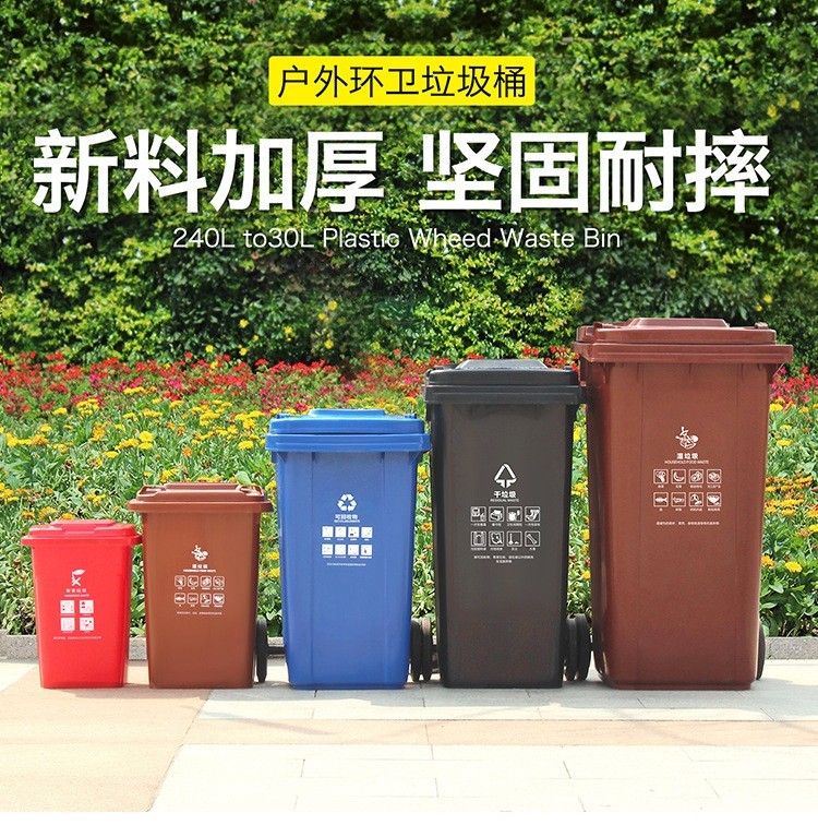納麗雅 100L帶輪 藍(lán)色 可回收垃圾桶 物業(yè)環(huán)衛(wèi)垃圾分類商用帶蓋分類垃圾桶果皮箱 單個(gè)裝