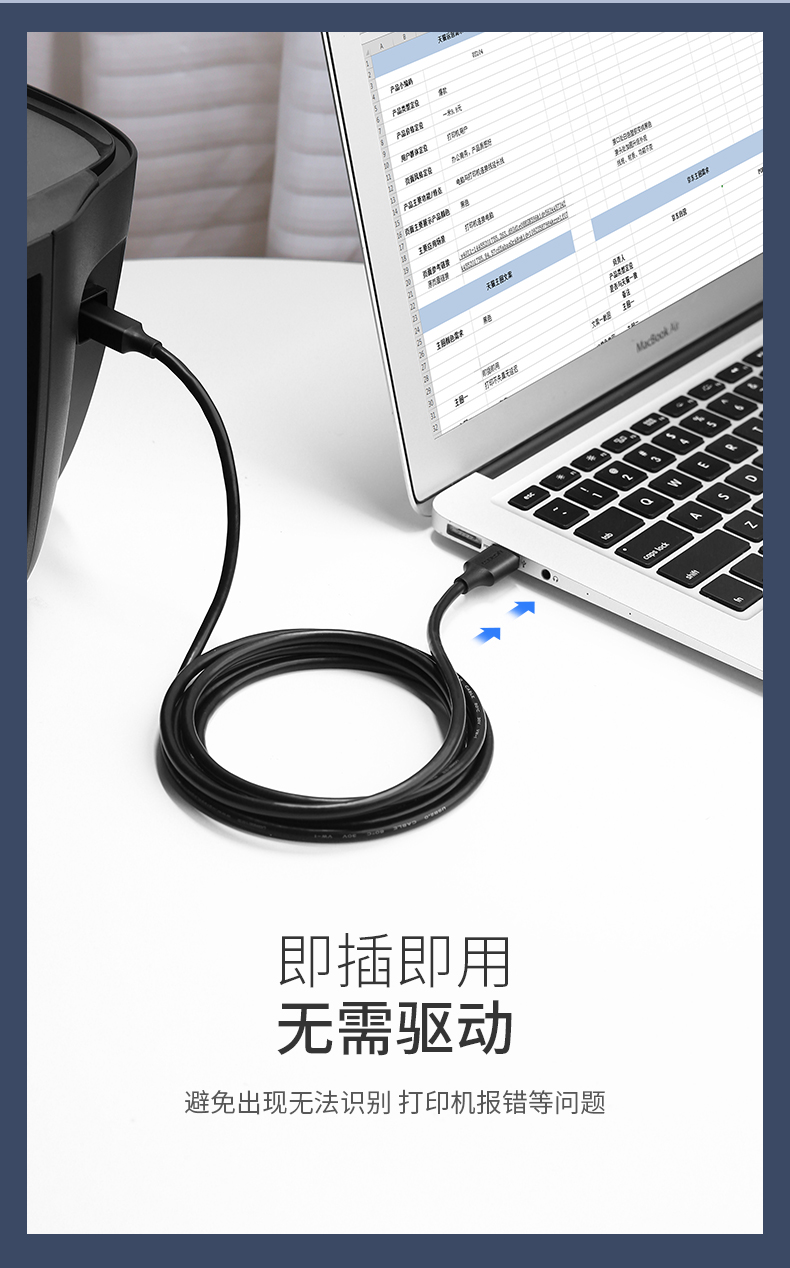 綠聯(lián) US104 高速USB打印機線 USB2.0方口數(shù)據(jù)連接線 A公對B公 AM/BM 適用惠普HP佳能愛普生 5米 黑色 單個裝
