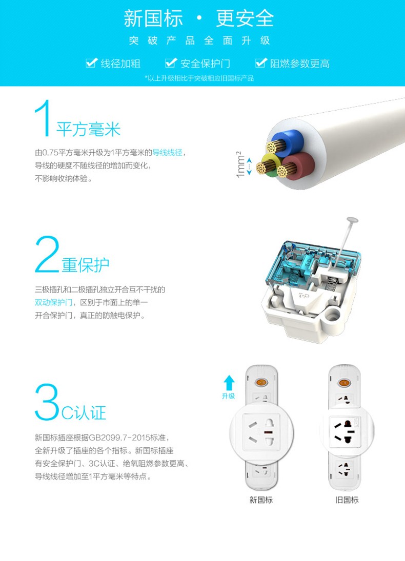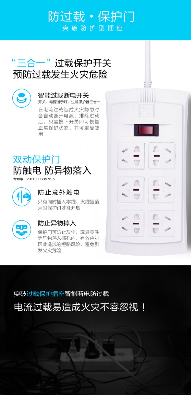 突破(TOP)D1K62 插座插排插線板/新國(guó)標(biāo)過(guò)載保護(hù)保護(hù)/總控開(kāi)關(guān)接線板/辦公家用 6位5米