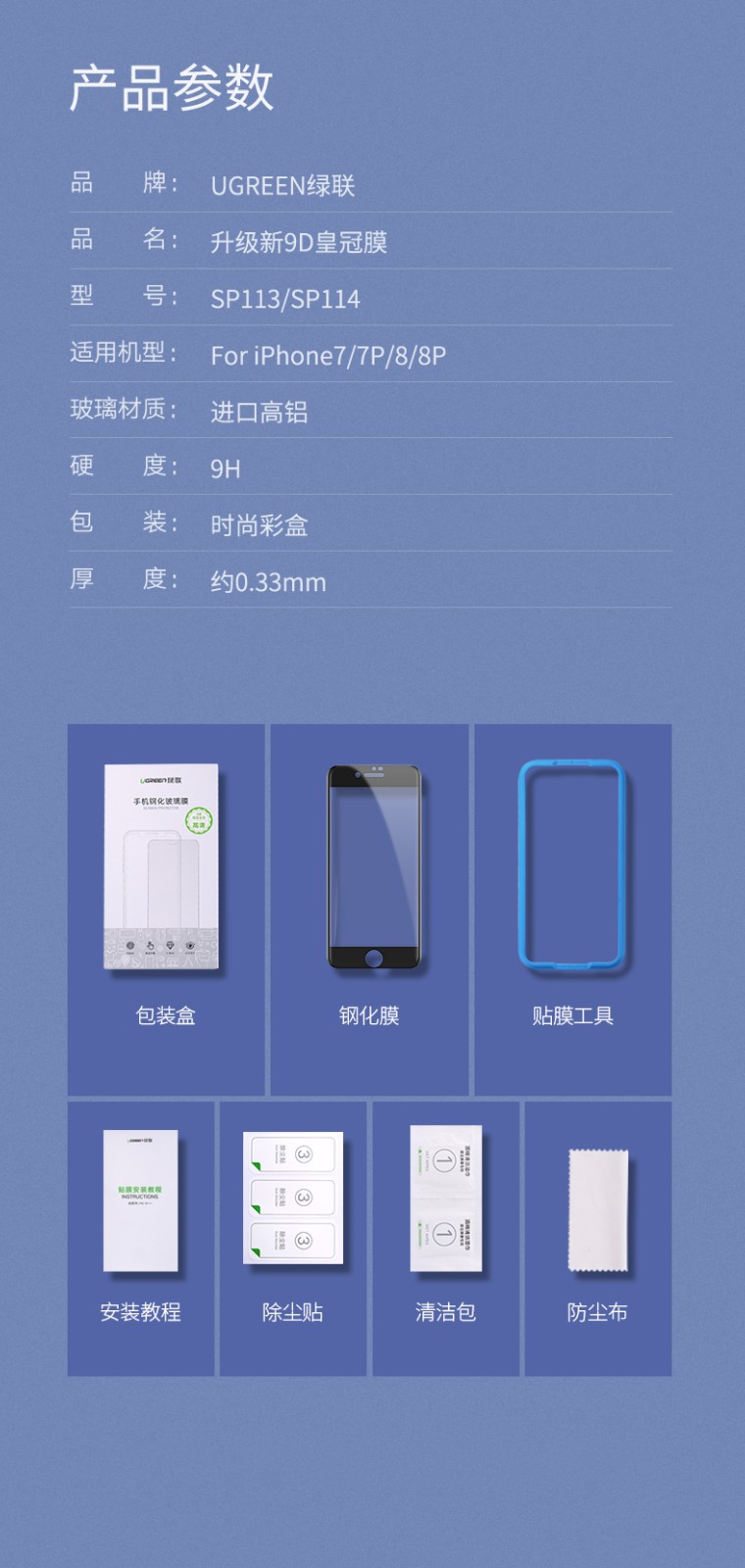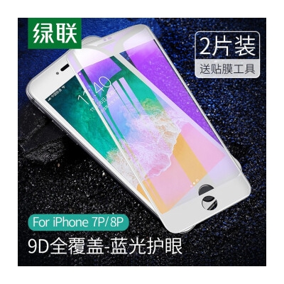 綠聯(lián) SP113 抗藍(lán)光鋼化膜適用iPhone7/8Plus蘋(píng)果手機(jī) 隱形防指全包邊防摔 白色 2片裝