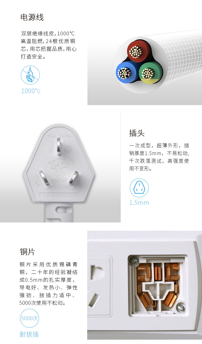 突破(TOP)TZ-T5K5 插座防過載插線板 接線板 5開5位 5米