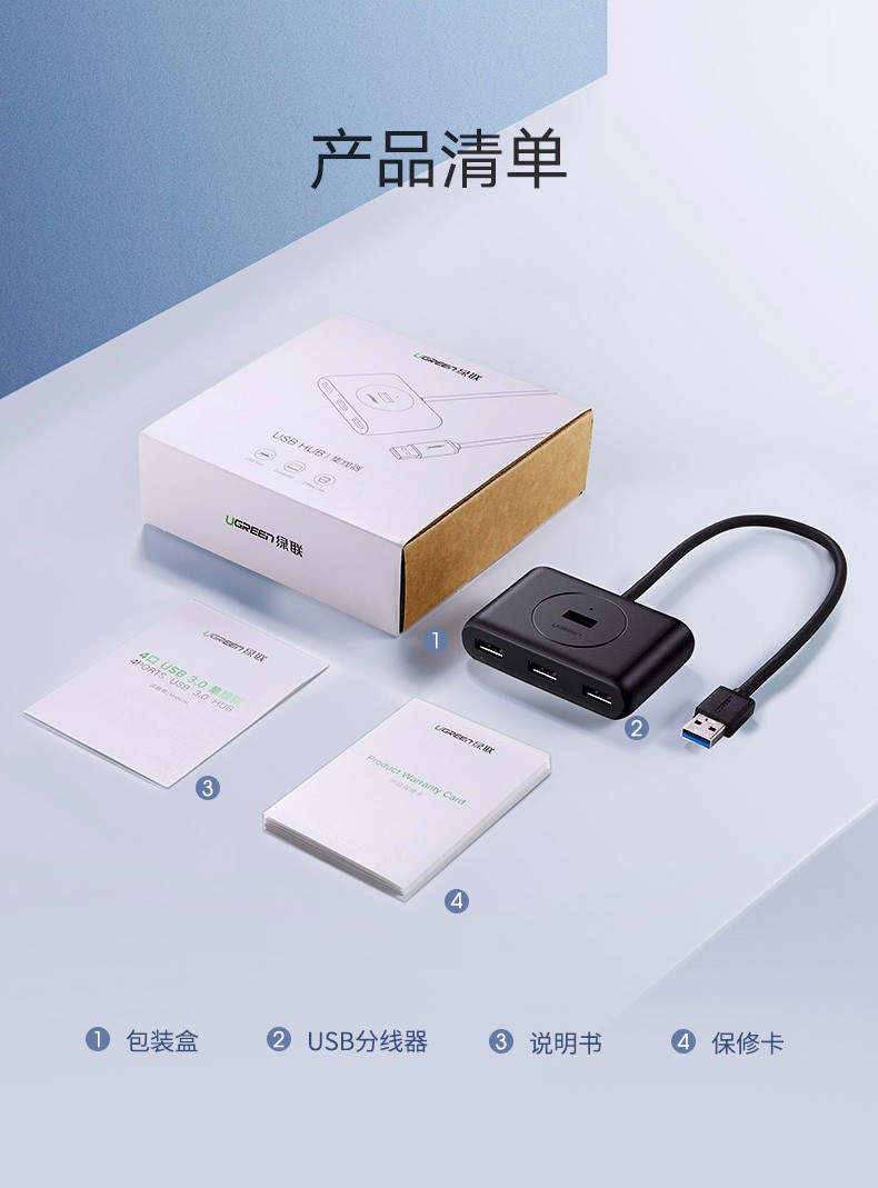 綠聯(lián) CR113 USB3.0分線器HUB集線器一拖四OTG集線器電腦筆記本高速type-c口擴(kuò)展HUB【USB款】 2米 黑色 單個(gè)裝