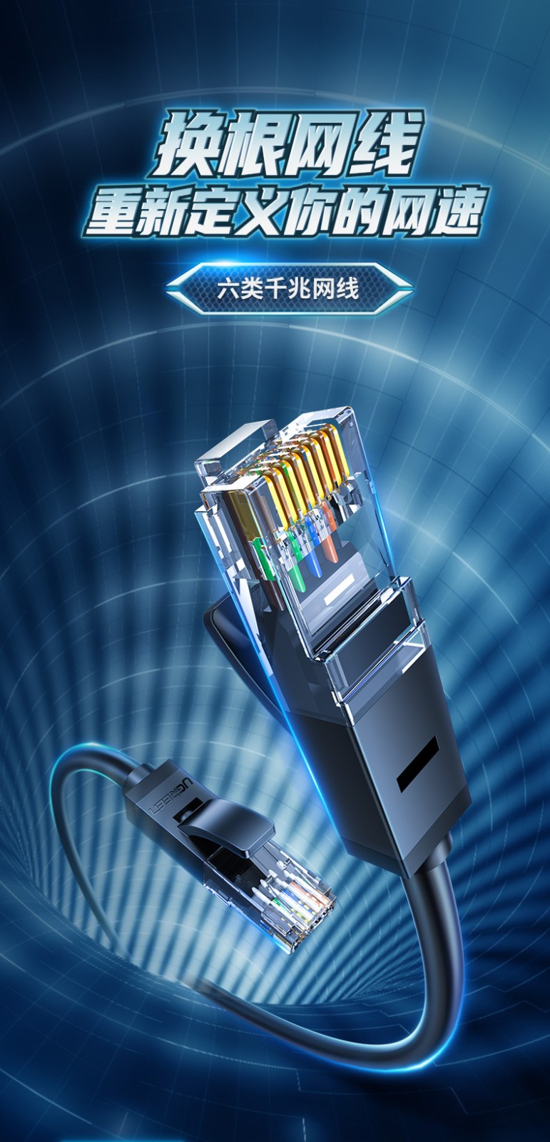 綠聯(lián) NW102 六類CAT6類網(wǎng)線 千兆網(wǎng)絡(luò)連接線 工程家用電腦寬帶監(jiān)控非屏蔽8芯雙絞成品跳線 30米 黑色圓線 單個(gè)裝