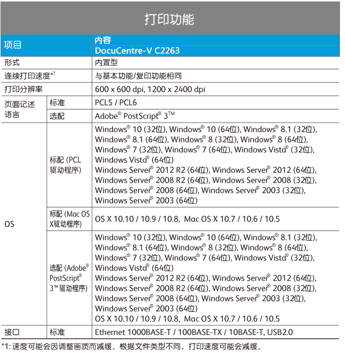 富士施樂 Fuji Xerox DocuCentre-V C2263 CPS 2Tray 彩色激光復(fù)印機 單位:臺