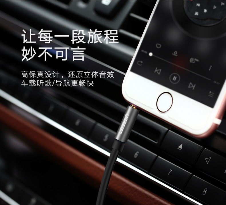 綠聯(lián) AV119 AUX車載音頻線 圓線 手機(jī)、MP3/4接音箱音頻線 黑色直頭對(duì)直頭 1米 黑色 單個(gè)裝