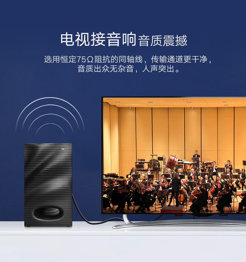 綠聯(lián) AV133 RCA蓮花頭數(shù)字同軸線音頻線低音炮發(fā)燒級(jí)公對(duì)公轉(zhuǎn)接線SPDIF音響箱功放75歐連接線適用小米電視 2米 黑色 單個(gè)裝
