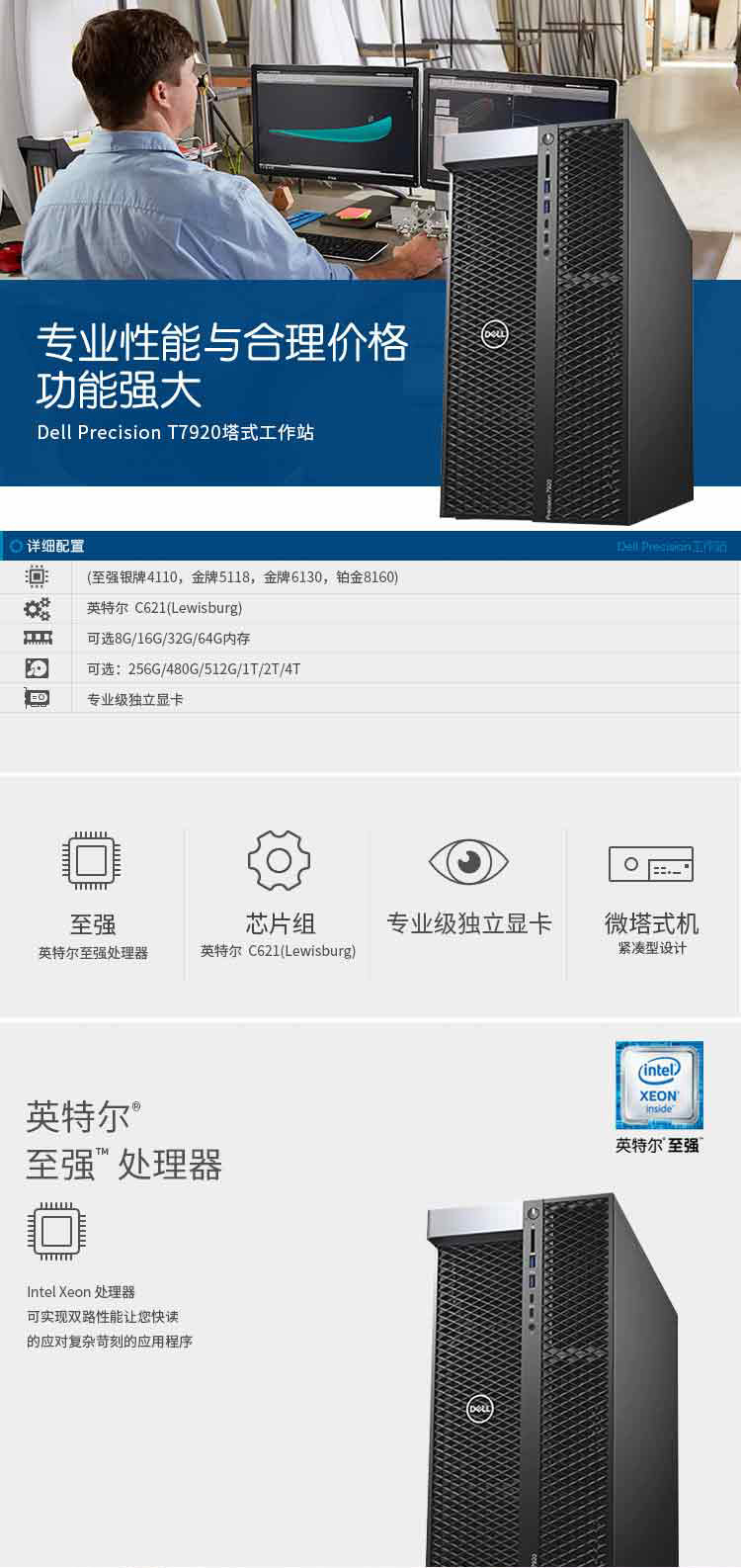 戴爾(DELL)Precision 7920Tower塔式圖形工作站主機(銀牌4110*2/8G*2/1T SATA/NVS315-1G/鍵鼠)三年質(zhì)保