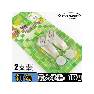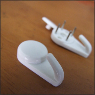 白色的塑料鉤子,頭上有4個非常細小的鋼釘,釘在墻上不容易破壞墻體,外附一個小圓蓋,扣在釘子外面,即看不到釘子了,又非常的美觀大方。