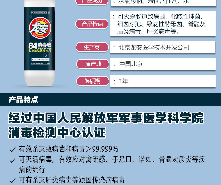 龍安84消毒液 470ml 單位:瓶