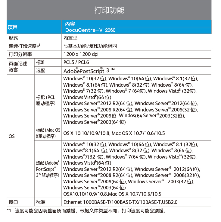 富士施樂復(fù)印機(jī) DocuCentre-V 2060 CPS 2Tray 黑白激光復(fù)印機(jī)單位:臺(tái)