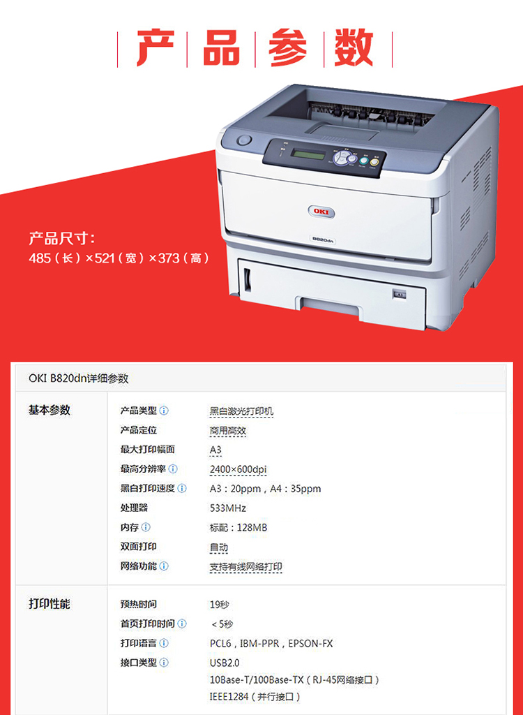 OKI激光打印機(jī) B820dn 單位:臺(tái)