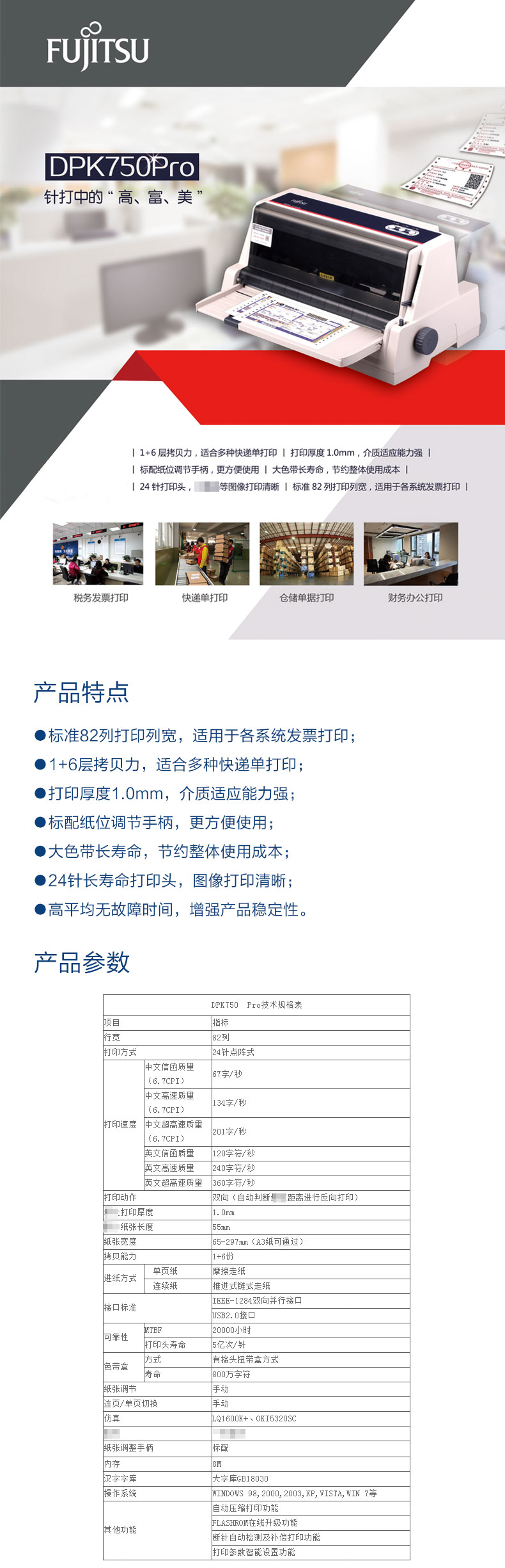 富士通 DPK750 Pro 針式打印機(jī) 單位:臺