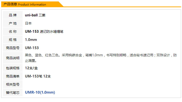 三菱 UM-153 1.0mm 防水速記中簽字筆 單位:盒