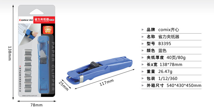齊心推夾器 B3395 推夾器 藍(lán)色 單位:個(gè)