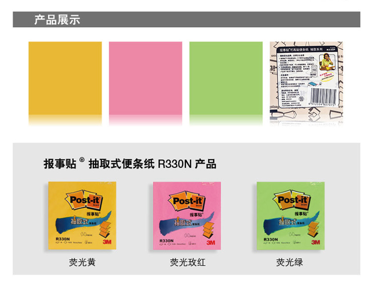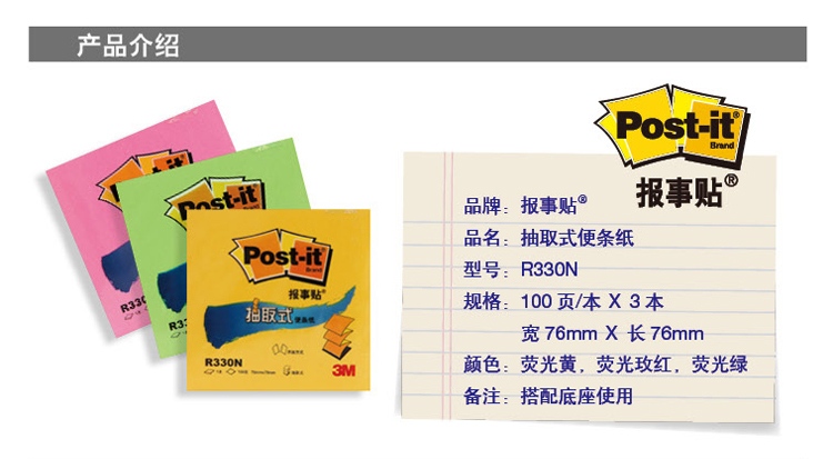 3M報(bào)事貼 R330N 抽取式便簽紙報(bào)事貼N次貼 76*76mm 粉色 單位:12本/包