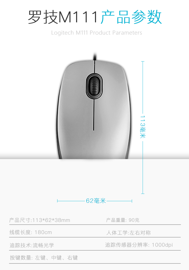 羅技有線鼠標(biāo)??M111 灰色 單位:個(gè)