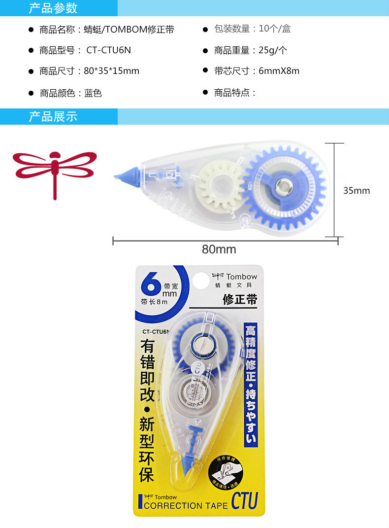 蜻蜓修正帶 CT-CTU6N 透明修正帶大容量8米 單位:個(gè)