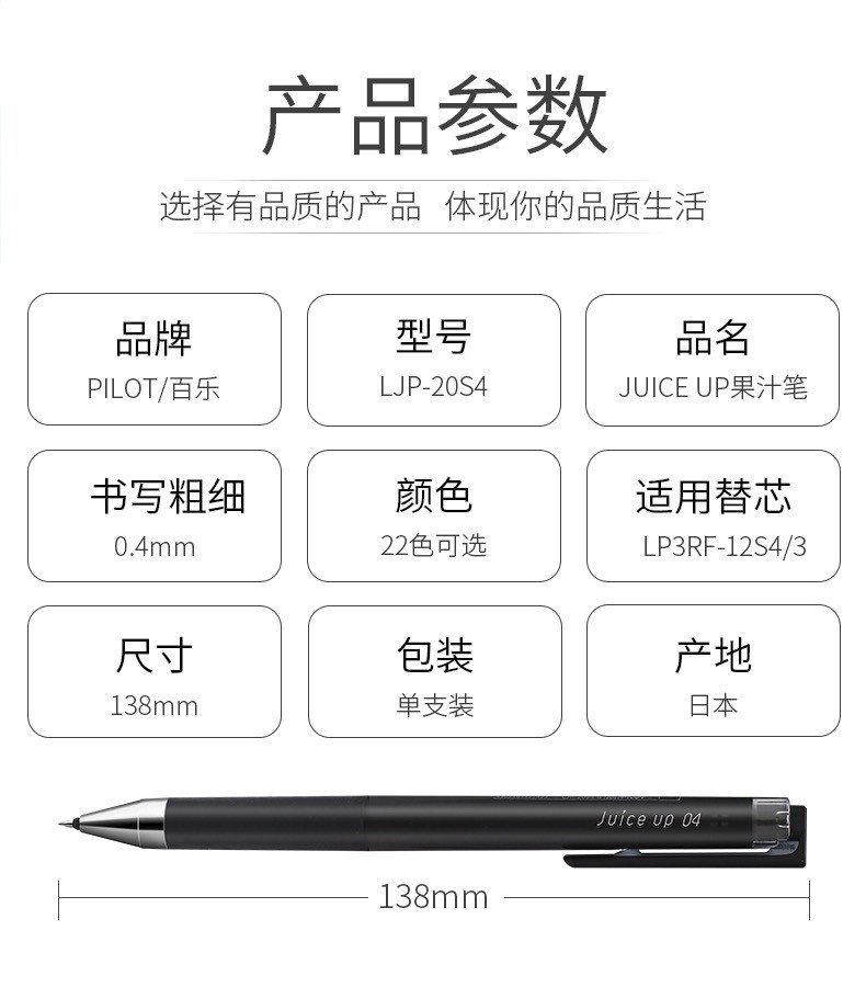 百樂手賬筆 LJP-20S4 0.4m 黑色 單位:支