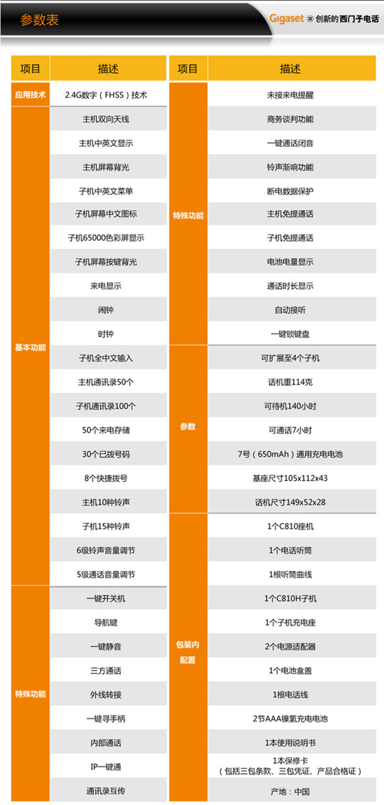 集怡嘉電話 C810無繩電話機(jī) 單位:套