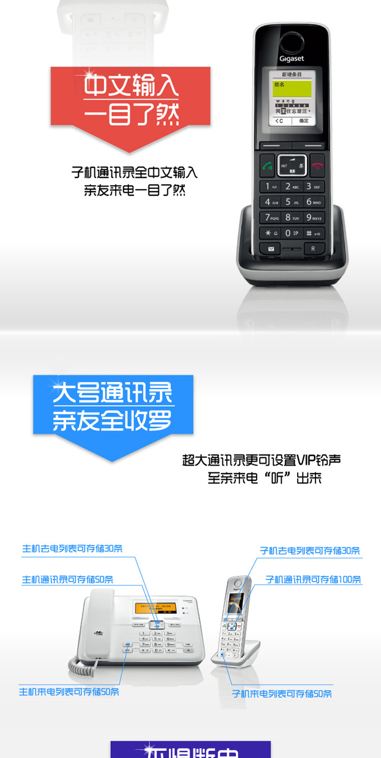 中文輸入無(wú)繩電話機(jī)須配合主機(jī)