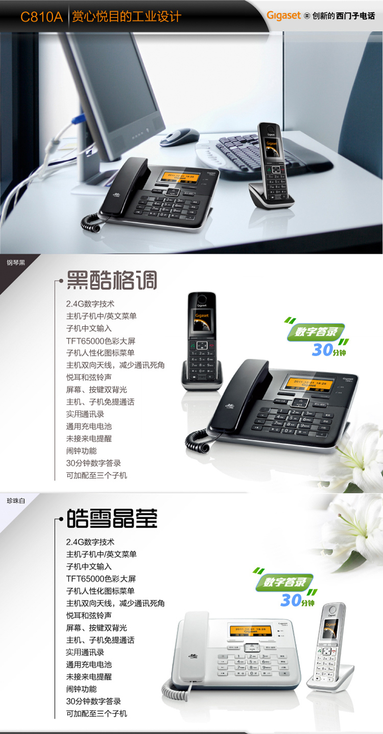 集怡嘉電話 C810A無繩數(shù)字子母機 單位:套