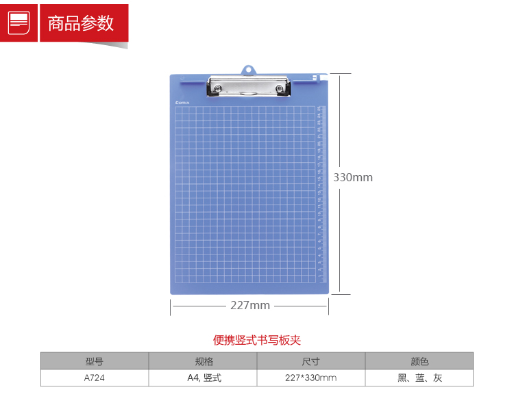 齊心書寫板夾 A724 A4帶刻度 單位:個