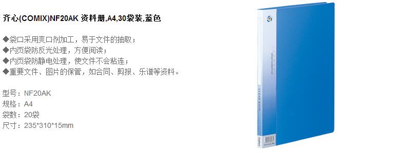 齊心(Comix) NF20AK 資料冊(cè) 藍(lán)色 單位:個(gè)