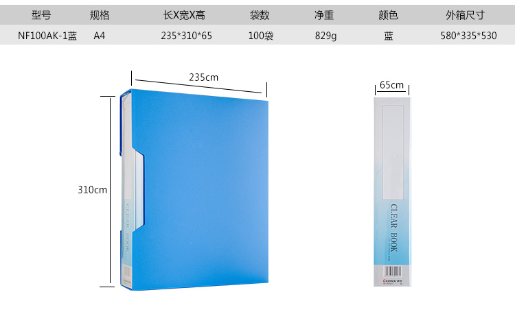 齊心(Comix) NF100AK 資料冊 藍色 單位:個