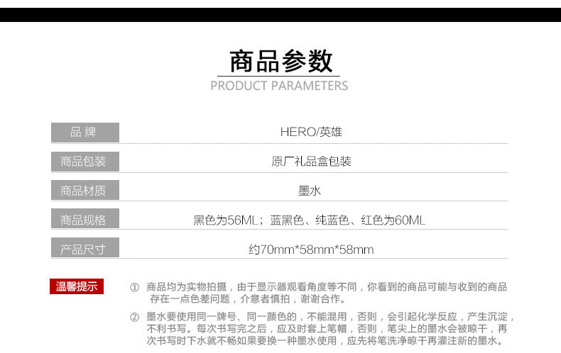 英雄墨水 碳素墨水232藍(lán)黑 單位:瓶