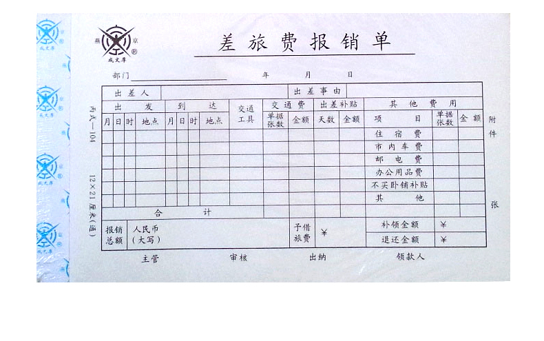 成文厚差旅費(fèi)用報(bào)銷(xiāo)單 301-104 出差報(bào)銷(xiāo)單據(jù) 單位:本