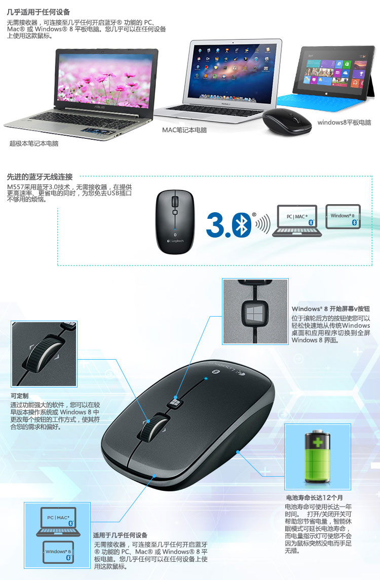 羅技無線鼠標(biāo) M557 紅色 單位:個(gè)