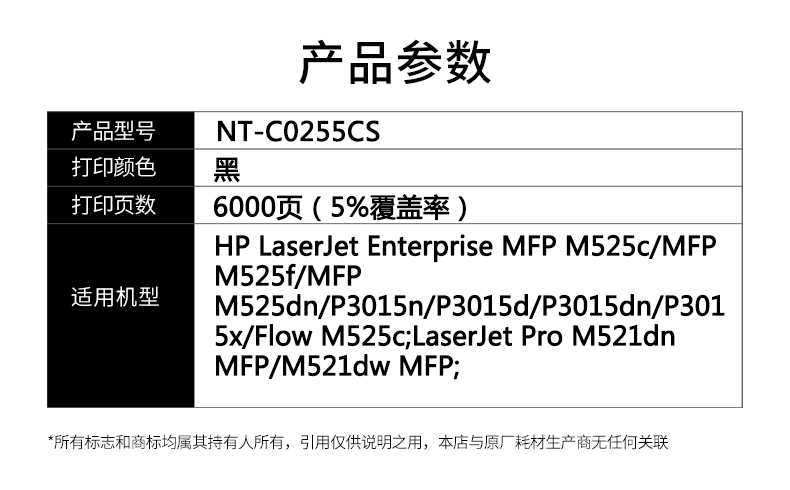 欣格墨粉 NT-C0255CS 黑色 單位:支