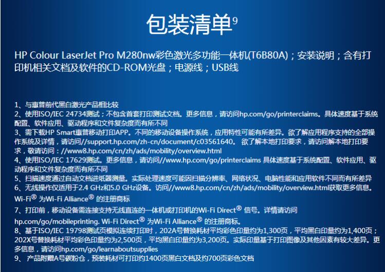 惠普多功能一體機(jī) M280nw 彩色激光 單位:臺(tái)