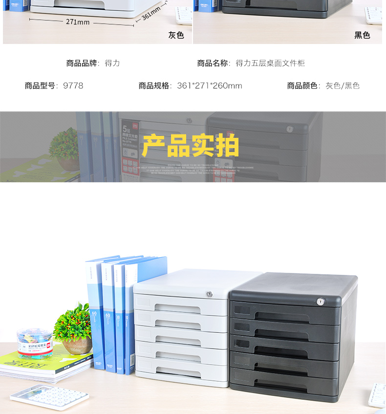 得力文件柜 9778 桌面資料整理文件柜5層帶鎖 黑色 單位:個(gè)