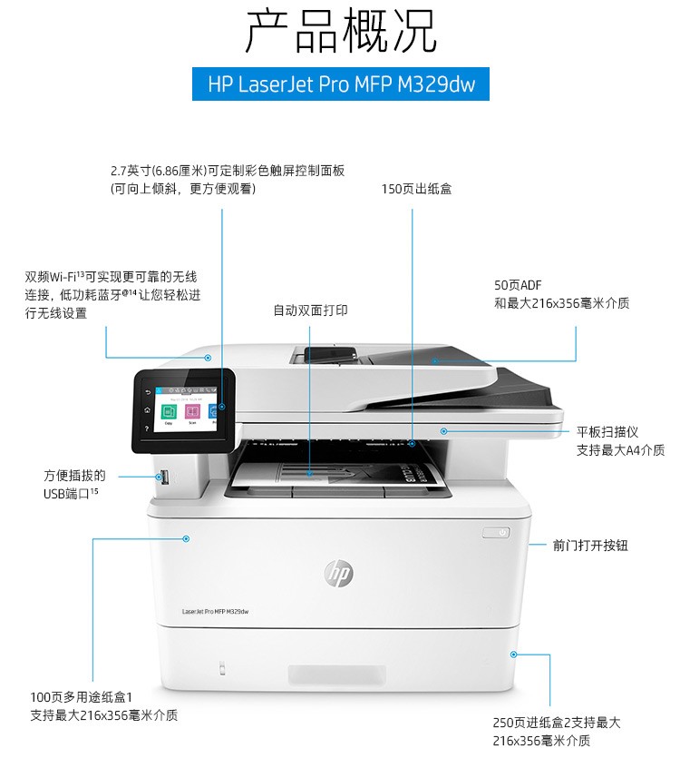 惠普多功能一體機 M329dw A4黑白激光 單位:臺