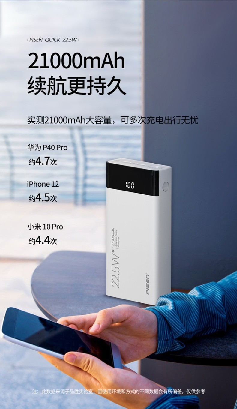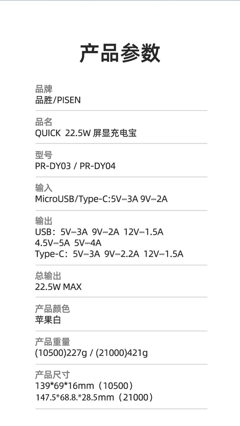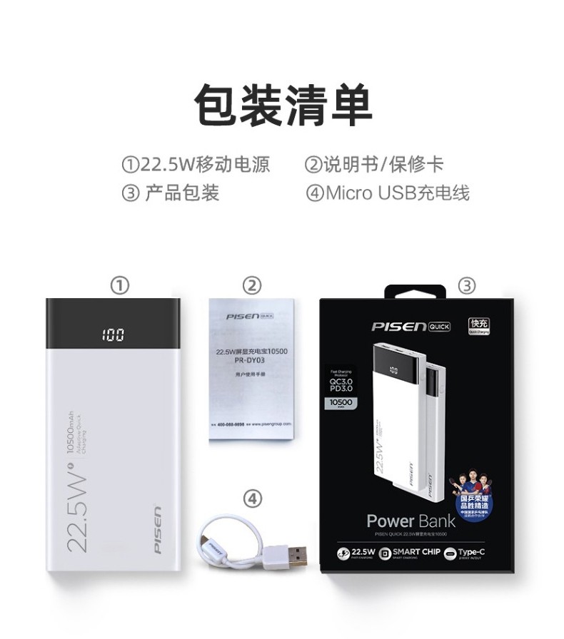 品勝移動電源 20000毫安大容量 22.5W雙向快充 單位:個