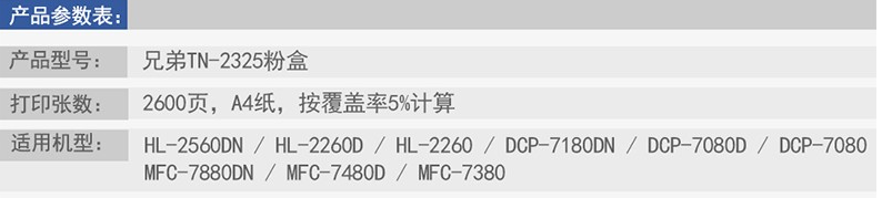 兄弟墨粉 TN-2325 黑色墨粉 單位:支