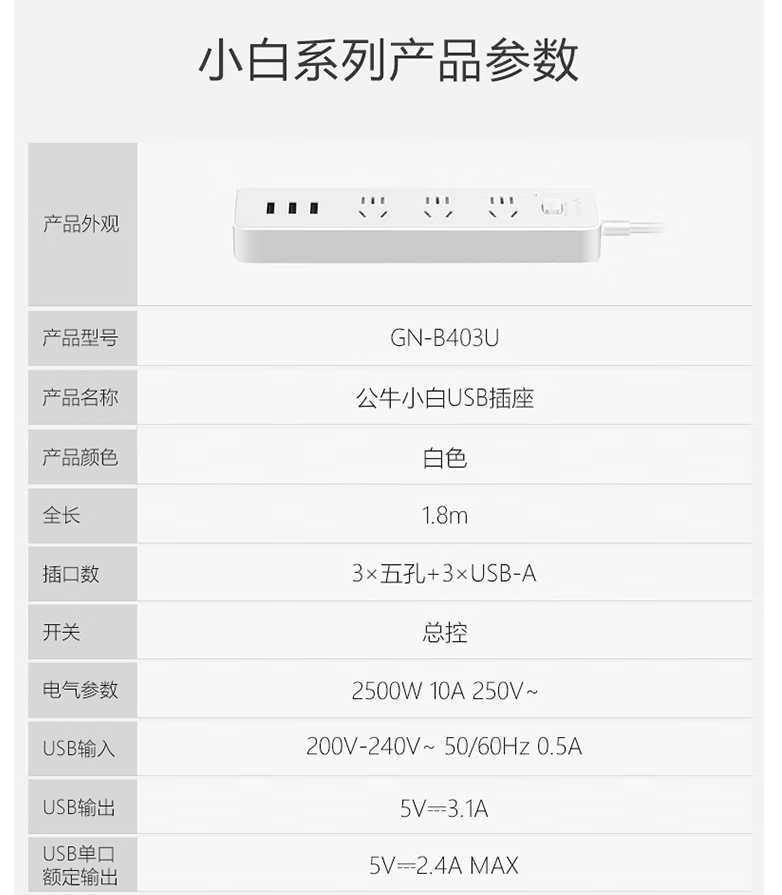 公牛(BULL)新國標(biāo)公牛小白USB插座 GN-B403U 單位:個