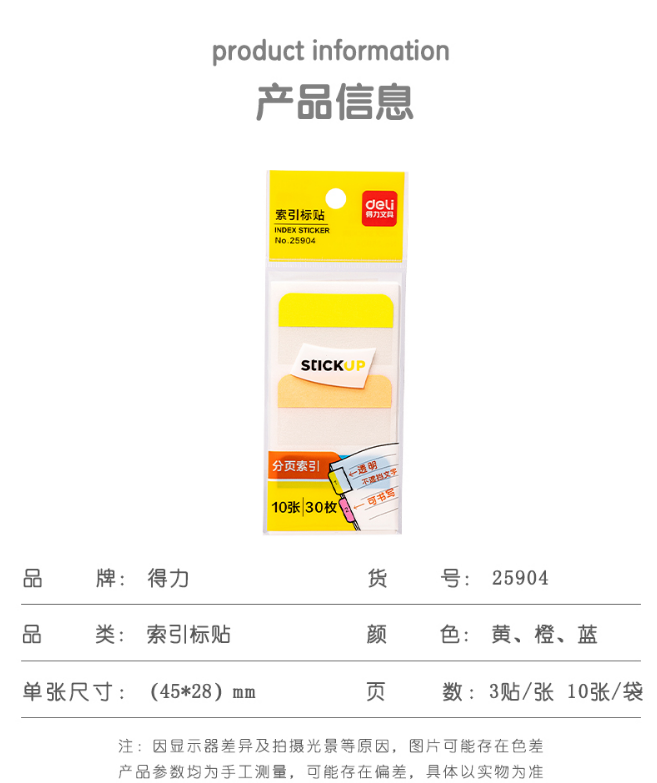 得力索引標(biāo)貼 25904 大號 單位:10張/包