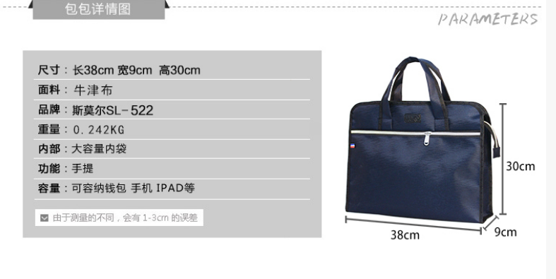 斯莫爾手提袋 SL-522 藍(lán)色 大容量內(nèi)袋文件袋公文包 單位:個