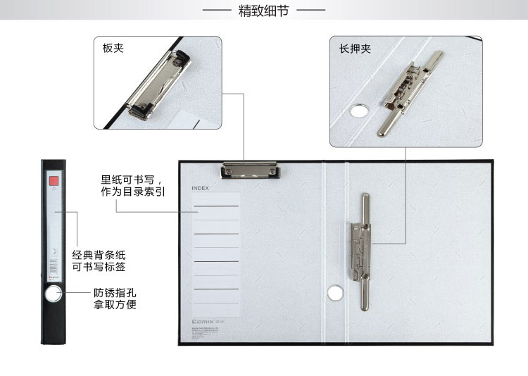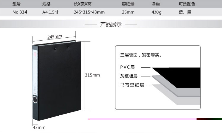 齊心(Comix) NO.334 紙板文件夾 資料夾 長押夾A4 黑色 單個(gè)裝