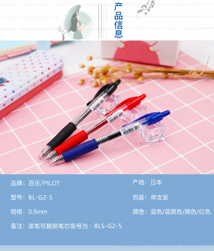 百樂 BL-G2-5 0.5mm按動中性筆子彈頭簽字筆 黑色 單支裝