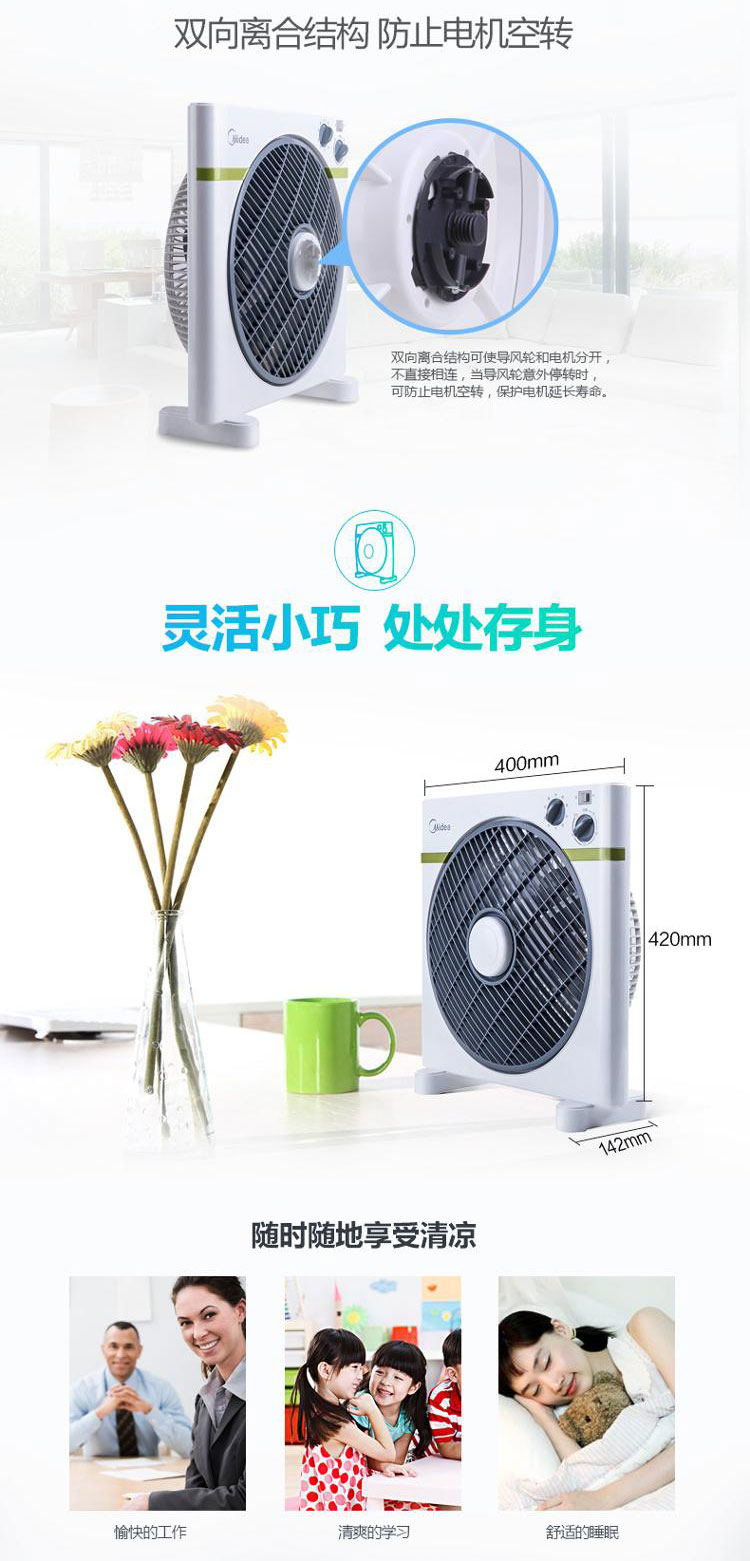 12寸加大風葉設計,風力勁足,不占空間,收納簡易便捷;四檔風速,360°雙向導風學生扇/鴻運扇,120分鐘定時,傾倒斷電